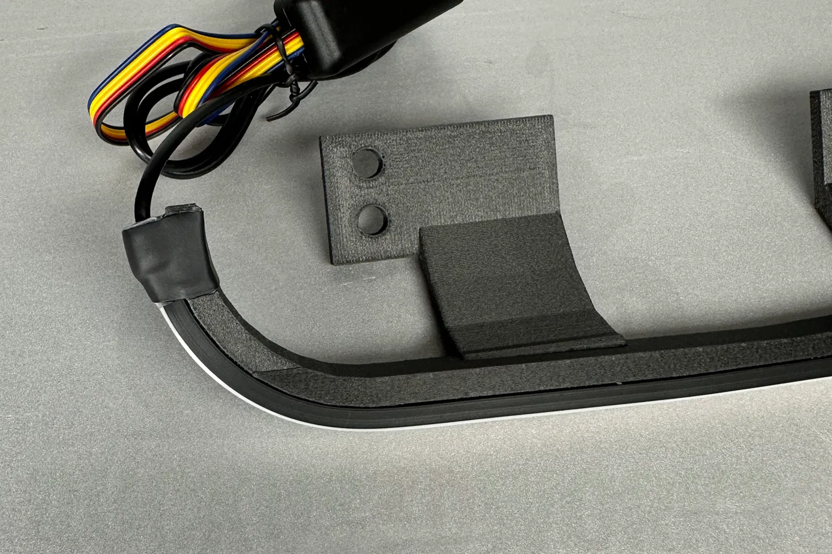 Bracket printed in PA12-CF for premium durability vs. ABS
