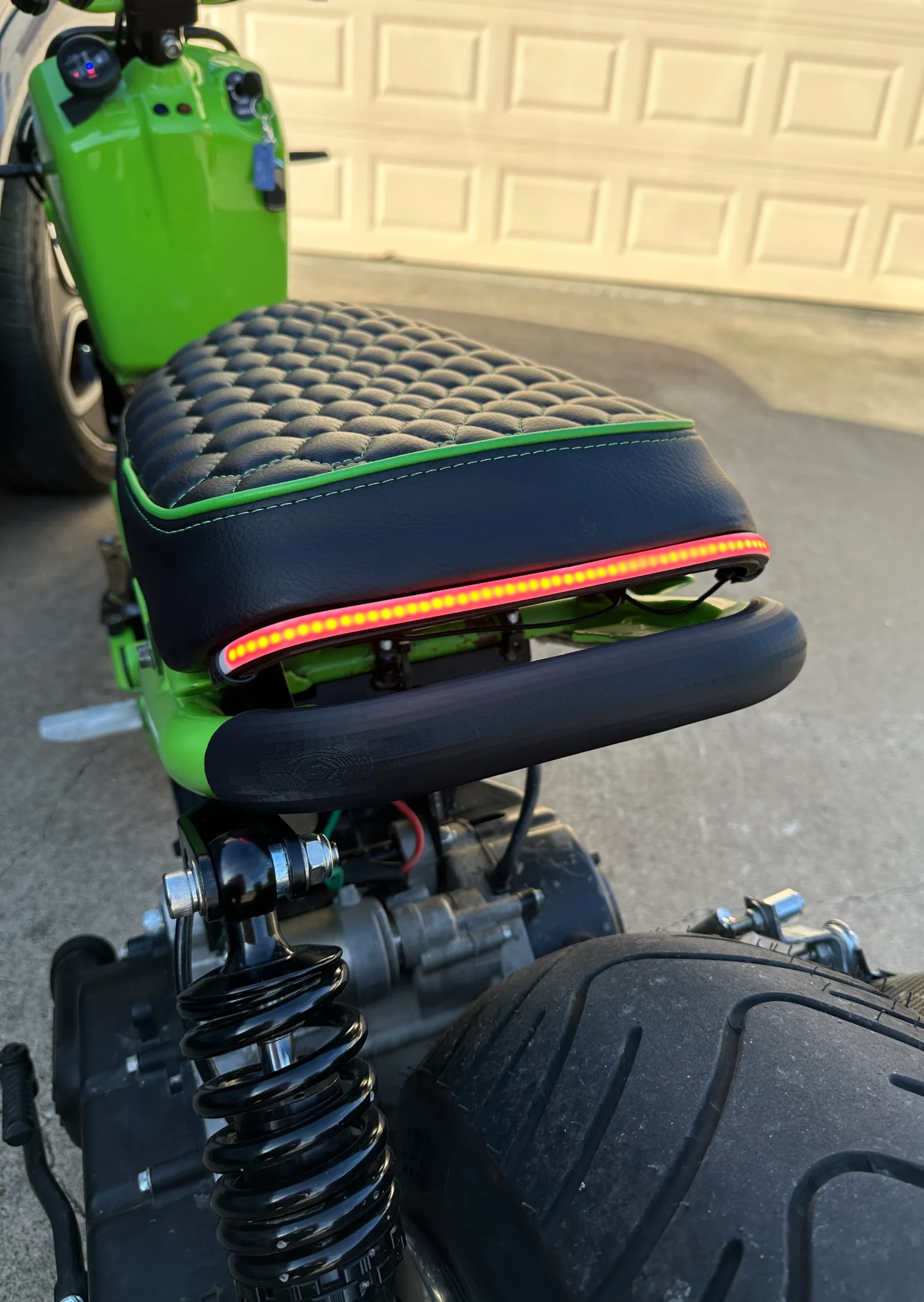 Upgrade your Honda Ruckus with a sleek under-seat LED taillight designed to match the stock seat curves for a clean, flush factory-style look. It’s ultra-bright, fully waterproof, and features integrated sequential/flowing turn signals. The PA12-CF 3D printed bracket installs easily using 4 screws (not included) for a durable, vibration-resistant setup.